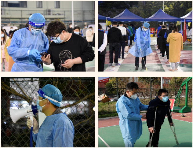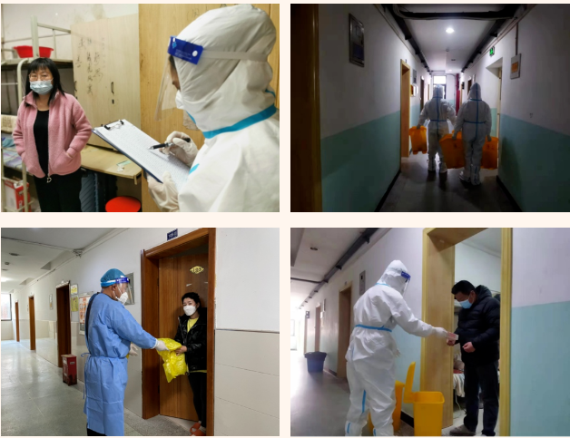 在這個(gè)集宿區(qū)內(nèi),有一群人奮戰(zhàn)在抗疫最前線。“大白”和“小藍(lán)”是他們最矚目的“通行證”、“工作證”,他們身份多樣,上演著超級(jí)“變、變、變”,他們既是細(xì)致入微的醫(yī)生助手,也是發(fā)放物資的大力水手,還是現(xiàn)場(chǎng)保障的行家里手。