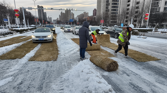 為確保城市主干道及橋梁暢通,建發(fā)公司緊抓夜間作業(yè)窗口,秉持“人歇車不歇”原則,調(diào)配精良設(shè)備與人員,對易結(jié)冰的橋面及主干道進(jìn)行高強(qiáng)度清除作業(yè)。作業(yè)人員利用后半夜車流較少的時機(jī),集中操作雪滾車、撒布機(jī)等設(shè)備,并同步在關(guān)鍵路口鋪設(shè)防滑墊。截至20日17時,累計投入各類機(jī)械16臺、作業(yè)人員320名,撒布融雪劑60噸,有效保障了主要道路的安全通行。