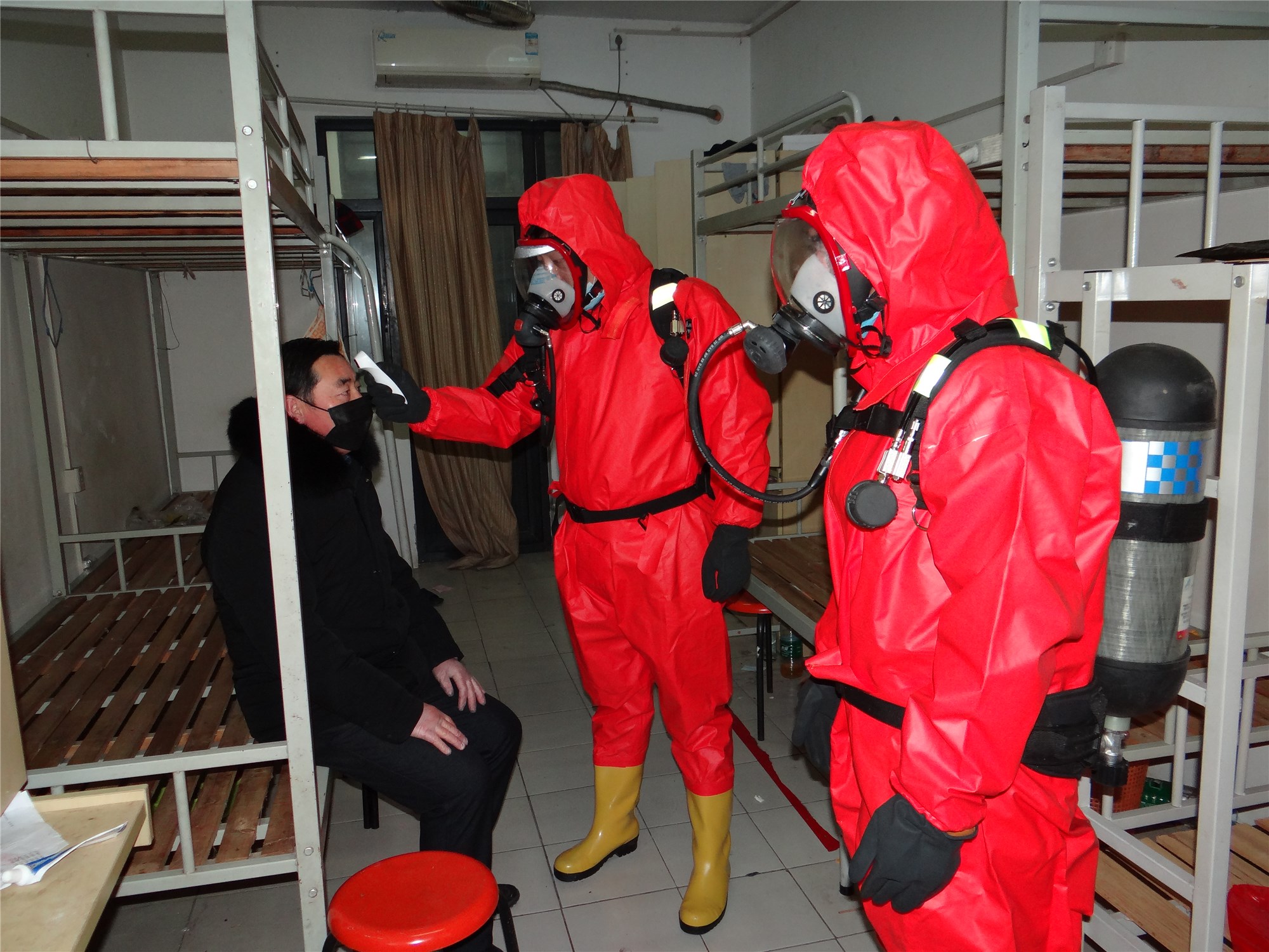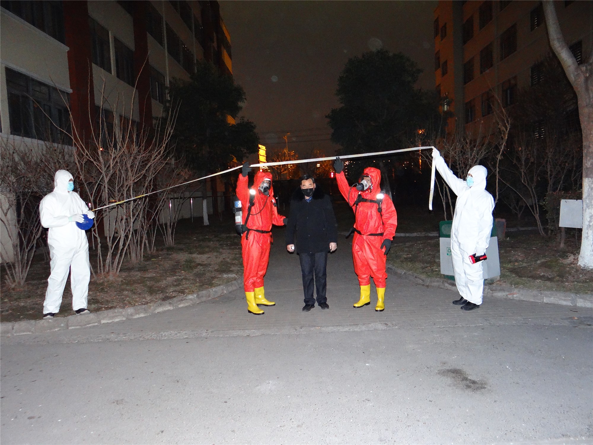 本次演練主要模擬一位5天前從徐州回到園區(qū)公舍的35歲男性患者,因發(fā)熱、咳嗽、咽痛、頭痛現(xiàn)象開始進(jìn)行演練,應(yīng)急小組迅速拉起警戒、轉(zhuǎn)移、指定區(qū)域隔離、消毒,并匯報相關(guān)部門,按照實(shí)戰(zhàn)應(yīng)急響應(yīng)標(biāo)準(zhǔn),統(tǒng)一領(lǐng)導(dǎo)指揮,工作人員加強(qiáng)個人防護(hù),演練過程緊張有序,細(xì)致謹(jǐn)慎,整場新型冠狀病毒肺炎應(yīng)急演練活動取得圓滿成功。
