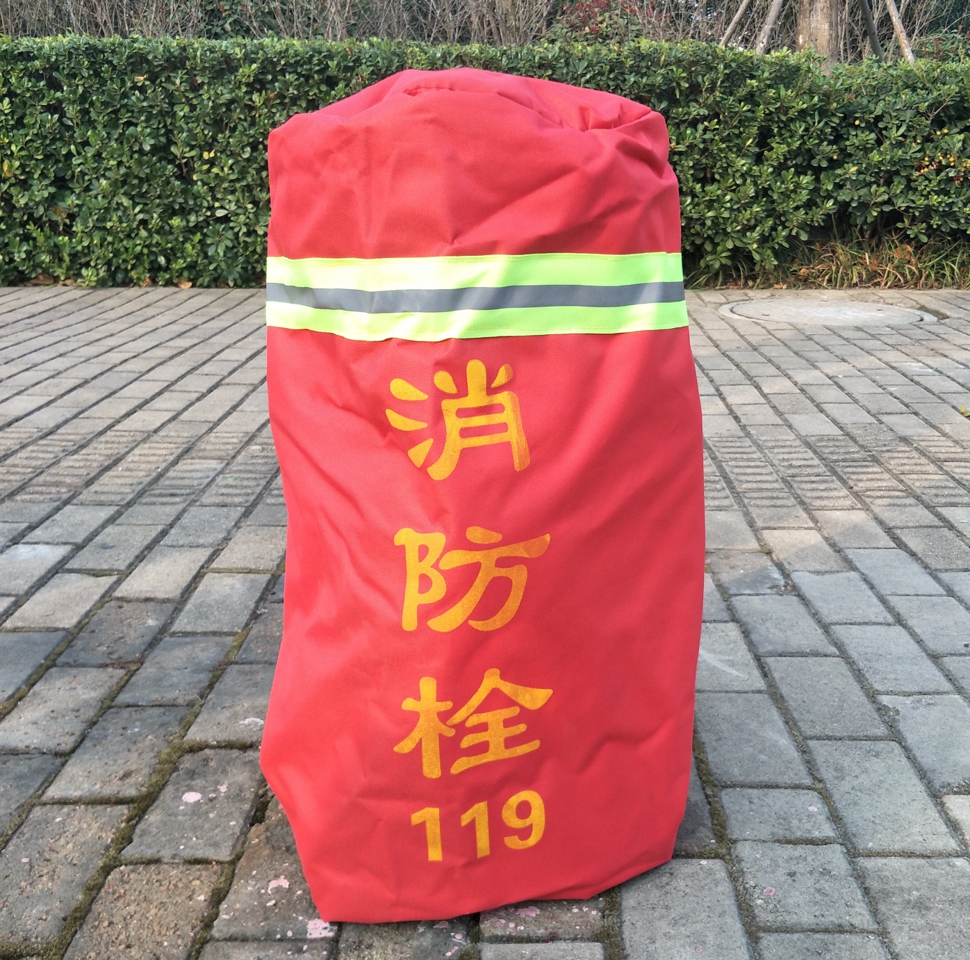 本次采用的保溫罩外層為紅色高密度牛津布材料,內(nèi)層為加棉復(fù)合布,外層印有“消防栓119 ”黃色字樣,頂部配有反光條。整個(gè)保溫罩看起來(lái)比較醒目、美觀,防寒防凍效果良好,有效保證了冬季消防用水安全。
