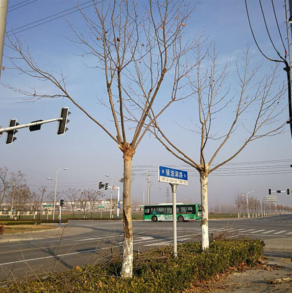 園區(qū)以法國(guó)梧桐作為行道樹(shù)的路段,主要集中在鏡泊湖路,本次修剪主要把原先長(zhǎng)勢(shì)不均衡、嚴(yán)重偏冠的苗木進(jìn)行集中統(tǒng)一修剪,以培養(yǎng)形成“三主六側(cè)十二杈”的杯狀樹(shù)形。